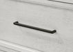 Evoke a comfortable and welcoming modern farmhouse ambiance with a charming five-drawer sideboard added to your dining room. The versatile piece offers plentiful storage with three smaller top drawers, all with felt lining, that are perfect for accessories and linens. Two larger lower drawers are also lined with felt and make a perfect spot for serve ware and other dining essentials. On each side, cabinets add even more space for storage, with louvered doors that deliver a perfect hint of rustic character. The sideboard features a charming two-tone finish complete with a charcoal sand-through finish on top and a vintage chalk white finish on the base that create a stylish combination.