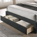 SYBELLA Full Bed, Dark Gray, 82 3/4"L X 57 1/8"W X 46 1/2"H, 133.4lbs. Comfort and functionality are the hallmarks of this fully upholstered, mattress-ready bed. On the comfort side, there's the rich linen-like fabric that wraps around the frame of the bed, culminating in a simple rectangular headboard with beautiful diamond tufting. Functionality-wise, the foot end of the bed is a smooth rolling drawer with casters; it's the perfect storage spot for any extra pillows or beddings within arm's reach.