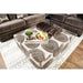 Bonaventura Brown Ottoman, 41"L X 41"W X 20"H, 64lbs. This large square ottoman is completely upholstered in microfiber. The dark almost finger print pattern offers a modern flair that can compliment a variety of room decors. Can double as an upholster coffee table, making it the perfect addition to sec tional sofas or multipurpose sofa sets. Features: Transitional Brown Microfiber, Solid Wood Frame Oversized Design Block Bun Feet
