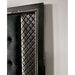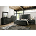 DEMETRIA Queen Bed, 90 5/8"L X 63 1/2"W X 67 7/8"H, 179.66lbs. Give your house a high roller suite with this ravishing bed. Every single inch of this ensemble holds something for you to enjoy, all the way down to the silver toe carved bun feet. Pebble boxed paneling canvases the collection's drawer faces and headboard side paneling. This unmistakable paneling is accented by beveled mirror trimming and acrylic encrusted drawer handles. The play on shape and texture is not lost on the headboard's button tufted fabric mantle, raised just above the pebbling and back lit by LEDs.