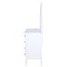 Lighten and brighten your bedroom storage ensemble with a modern ten-drawer dresser and mirror combination. In clean, fresh white, the set delivers abundant storage and organization with four smaller upper drawers and six larger drawers underneath. The mirror on top adds a finished look, while offering reflectivity and airy ambiance. It shows off a double bowed front silhouette, augmented with the intriguing texture of natural rattan drawer fronts that enhance its casual, coastal character. Petite round knobs and tapered legs complete the look with refined, restrained elegance.