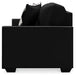 Raise your standard of living with this sofa in onyx black. Reserved exclusively for those with a penchant for high-glam home decor, this ultra-chic sofa is dressed to impress with a clean-lined profile, 2-over-2 cushion styling and sleek track arms punctuated with nailhead trim. Easy on the eyes and alluring to the touch, this decidedly contemporary sofa is covered in a low-pile soft velvet that’s impossible to resist. Abstract-patterned throw pillows enhance the posh appeal.