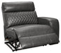 City sleek living. This loveseat is loaded with luxury. An ultra-stylish diamond stitch design pumps up the piece with eye-catching drama. And talk about style with purpose. This stunning selection supports you with a high back and faux leather upholstery in gorgeous gray. Its USB charging station powers up your tech life as you recline in comfort. Cheers to the stainless steel cup holders, too.