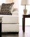 SONORA Loveseat, Beige, 71"L X 44"W X 40"H, 100lbs. Sit back and enjoy the tried-and-true classic appearance of this loveseat in your living. Plush T-seat cushions and loose pillow backs feature smooth curves that create a truly inviting appeal that enhances this loveseat, without detracting from the comfort it provides: the soft fabric and spacious wide armrests. Each piece is supported by tapered block legs visually obscured by the bright nickel polished nailheads that line the bottom edge of the frame. This loveseat mingles uniquely old fashioned themes with more modern luxurious comforts.