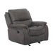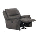 Prop up your feet and recline into relaxation after a long hard day of work, or spend some quality time watching a movie with your loved ones on these cushioned pieces. From the arms to the cushions to under the flaps in the back, they are fully upholstered in soft fabric in a neutral tone to help ensure a seamless fit to any home decor. Firm yet comfortable seating is brought to you by cushions made of high density foam, fiber-filled backs, and no sag suspension underneath. A stand-alone glider recliner offers the same exceptional experience for a sole user.