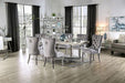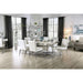 SINDY Dining Table, 72"L X 38 1/4"W X 30 1/4"H, 111.63lbs. Uniquely designed closed chrome metal legs highlight this rectangular dining table with the gorgeous table top. When you want something that's a bit out of the norm, this piece fits the bill and is a wonderful addition to any room.