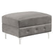 Decorator-inspired flannelette fabric and deep tufted frames combine for a seating experience that is forever inviting. The classic tuxedo design flourishes among more modern details such as the steel legs and button tufting. This ottoman fits perfectly in between the chaises for a spectacular look.