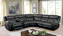 BROOKLANE Power Sectional, 125 1/2"L X 112 1/2"W X 39 1/2"H (SEAT HT: 19", SEAT DP: 21 1/2"), 445.06lbs. Here's a monochromatic masterpiece that belongs in the center of your living space! The brilliant two-tone finish allows for the unique interplay of gray and black leatherette. In this large sectional, cushions are plush, along with padded arm rests, where the stylish contrast stitching is shown off. Recliners are controlled by power motors so you get just the right angle for the most comfortable rest. And of course, built-in USB chargers exist to keep your technologies topped off.