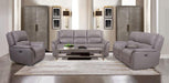 Easy reclining function gives this functional living group its most spectacular feature-- convenience and comfort to anyone that finds themselves seated on them. Lean back and sink into the plush cushions supported by no sag suspension and corner-blocked hardwood frame within. Enjoy the wall hugger design of the reclining mechanism requiring only a mere three inches off the wall for a fully-laid out position so you can recline to maximum comfort with no worries with a touch of a button. On top of that the whole set is upholstered in top grain leather