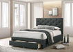 SYBELLA Twin Bed, Dark Gray, 82 3/4"L X 41 3/8"W X 46 1/2"H, 118.8lbs. Comfort and functionality are the hallmarks of this fully upholstered, mattress-ready bed. On the comfort side, there's the rich linen-like fabric that wraps around the frame of the bed, culminating in a simple rectangular headboard with beautiful diamond tufting. Functionality-wise, the foot end of the bed is a smooth rolling drawer with casters; it's the perfect storage spot for any extra pillows or beddings within arm's reach.