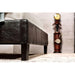 VILLA PARK Espresso E.King Bed, 86"L X 79"W X 41"H, 112.2lbs. A sleek modern vibe fused with the relaxing warmth of the leatherette headboard will create a casual yet sophisticated look. There is generous storage in all the matching case goods, which are accented with brushed nickel knobs. A twin size bed is al so available with its own set of kids case goods. Features: Contemporary Style Padded Leatherette Platform Bed Curved Headboard European Slat Kit Solid Wood, Others Espresso Finish