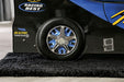 DUSTRACK Twin Bed, Blue, 82 1/2"L X 41 1/2"W X 23 1/2"H, 94.35lbs. For those aspiring race car drivers, here's the perfect bed to feed their aspirations! With replicated wheels and sponsorship markings, this race car bed is a dreamer's delight. And it's sturdy, too. Metal support structure and included slat kits ensure a stable, safe, and fun space.