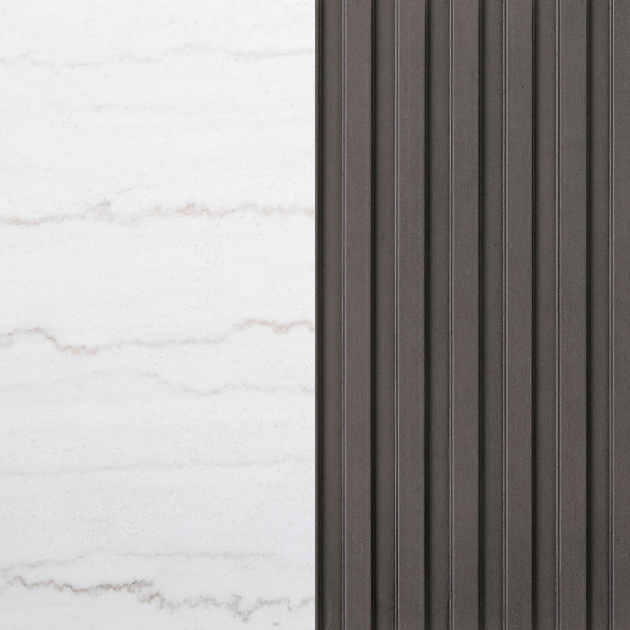 Center your living space on an elegant, modern coffee table. Its round silhouette creates a unifying ambiance, while white marble is the ultimate in sophistication. Understated veining adds organic flair, while its clean coloration is beautiful no matter the surrounding decor. A drum silhouette defines the table, with a ribbed base in a black finish to create a sense of texture and depth. Add a centerpiece of fresh or dried flowers to bring an earthy touch.