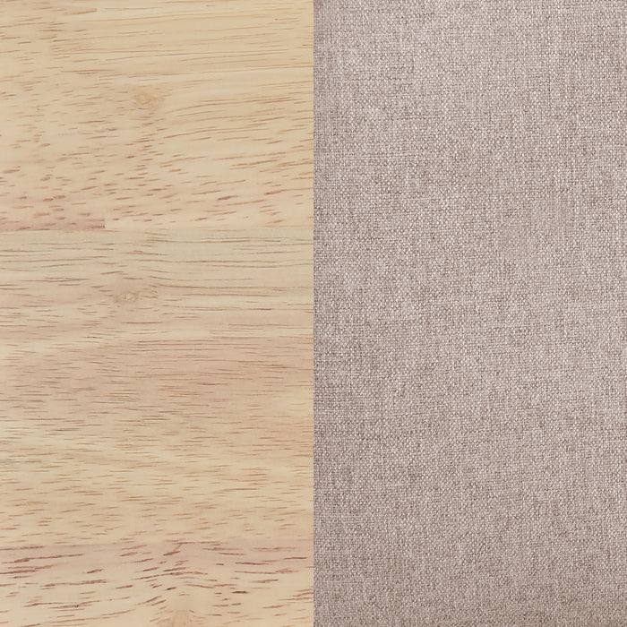 Bring a touch of simplicity and comfort to your dining space with this stylish chair. Designed with a minimalist appeal, the chair is crafted from a mix of solid wood and engineered wood for both durability and a natural aesthetic. The tan fabric upholstered seat, padded with foam cushioning, provides a soft and comfortable place to sit, making it ideal for long dinners and casual gatherings. The rounded backrest adds an organic, contemporary vibe, complementing the overall light, airy look of the chair.