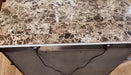 ROSEWOOD Night Stand, 34"W X 19 7/8"D X 32 1/4"H, 114.4lbs. This traditional masterpiece is covered in intricate faux wood details, made to look like carved wood in complex foliage patterns. These ornamentations are found on the drawer panels and match the antique style hanging pulls. The top is a slab of genuine marble pristinely cut into 25 millimeter thickness. It also features a hidden USB/power outlet for extra convenience. If classic extravagance is your cup of tea, the Rosewood night stand has plenty of it.